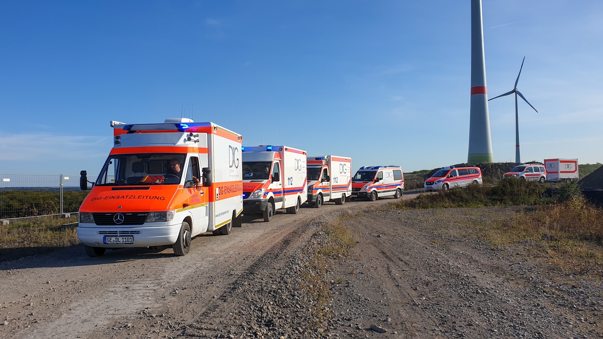 Koordiniert wurde der komplette Einsatz durch die Einsatzleitung im unternehmenseigenen Einsatzleitwagen. Der Einsatzleitwagen (ELW) verfügt neben moderne Kommunikationstechnik (Digitalfunk, Analogfunk etc.) ebenfalls über moderne Einsatzleitsysteme an mehreren Arbeitsplätzen. Durch unsere langjährige Erfahrung im Bereich professioneller Sanitätsdienste verfügt die DiG Rettung & Brandschutz über Spezialfahrzeuge wie z.B. vollständig geländefähige Rettungswagen oder spezielle Gerätanhänger (GA-Sanitätsdienst).